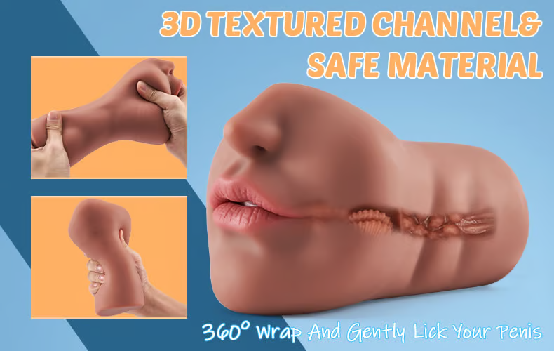 Safe material and 3D textured channel for feeling the reality of oral sex.