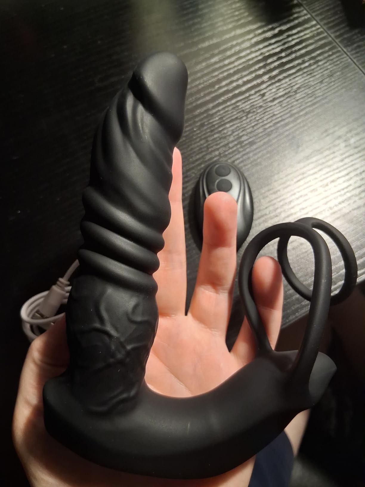 Item was shipped quickly by seller and arrived in a discreet package. Soft silicone is very nice and easy to clean. Comes with usb charger and remote control. The shape is wonderful and slides into place just right and allows for extra fun with a remote for your partner. This one moves up and down extending to the spot with vibration and different modes. Very nice item.