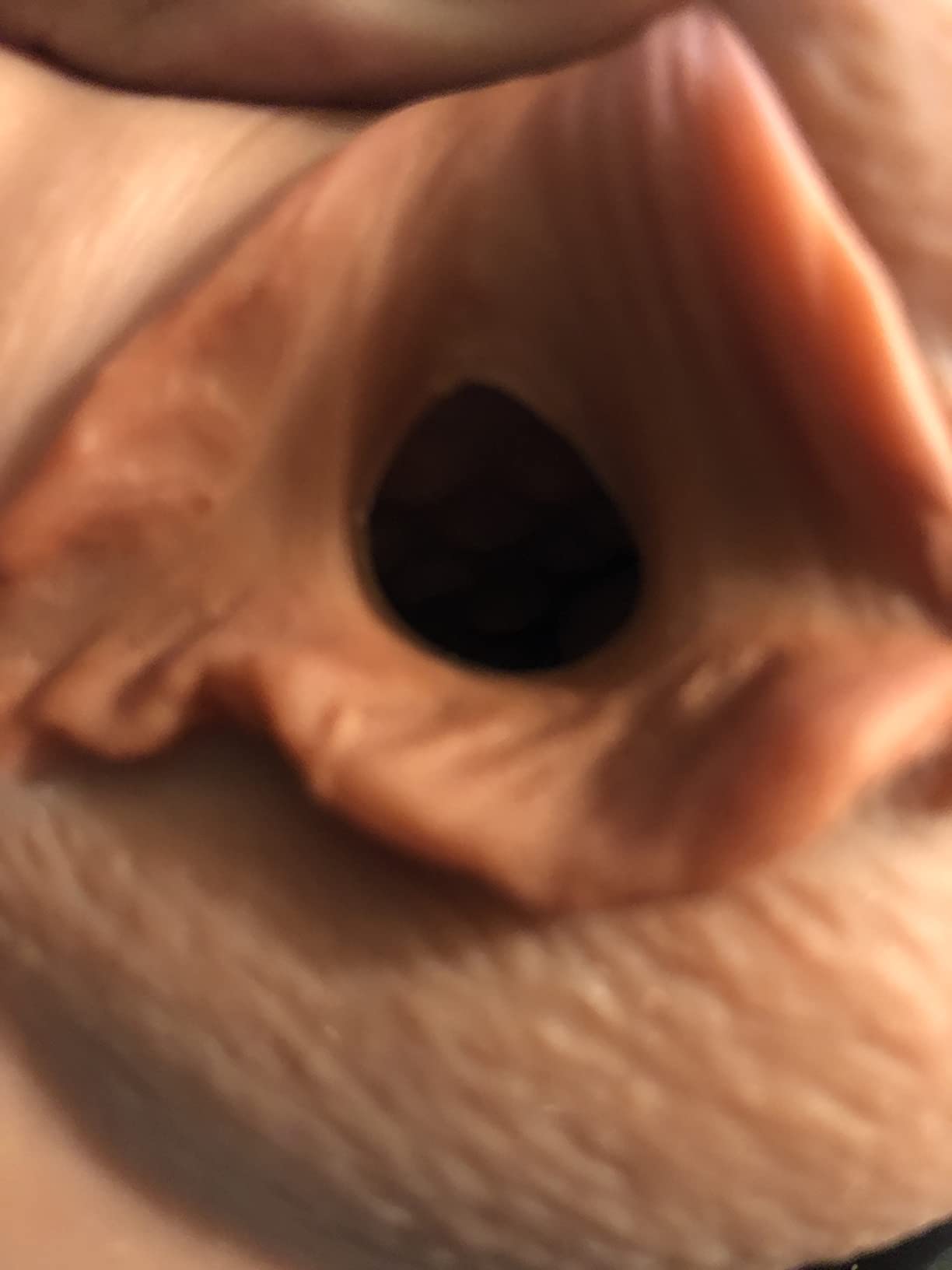I was really taken back by the teeth inside the mouth but it turned out to be a pleasant addition. Cleanup was easy and the toy is just the right size, not uncomfortable to hold.