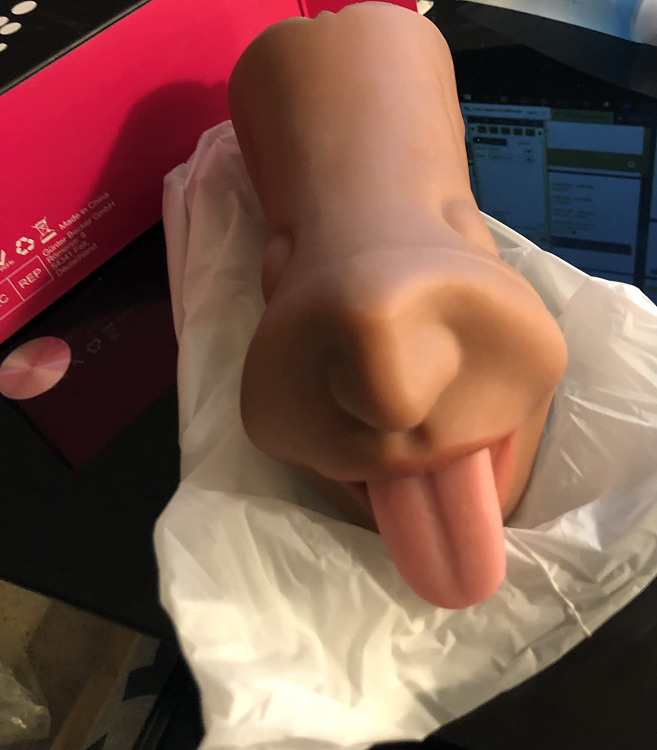 The tongue on this item really adds a lot to its design. I enjoyed the little extra the most, it is ribbed on the inside and fairly easy to keep a grip on it. The material is very stretchy and can easily accommodate you. Very nice toy to add to my collection!