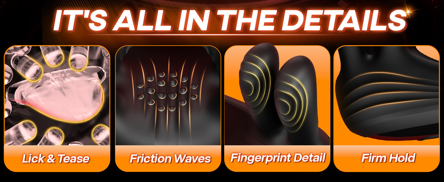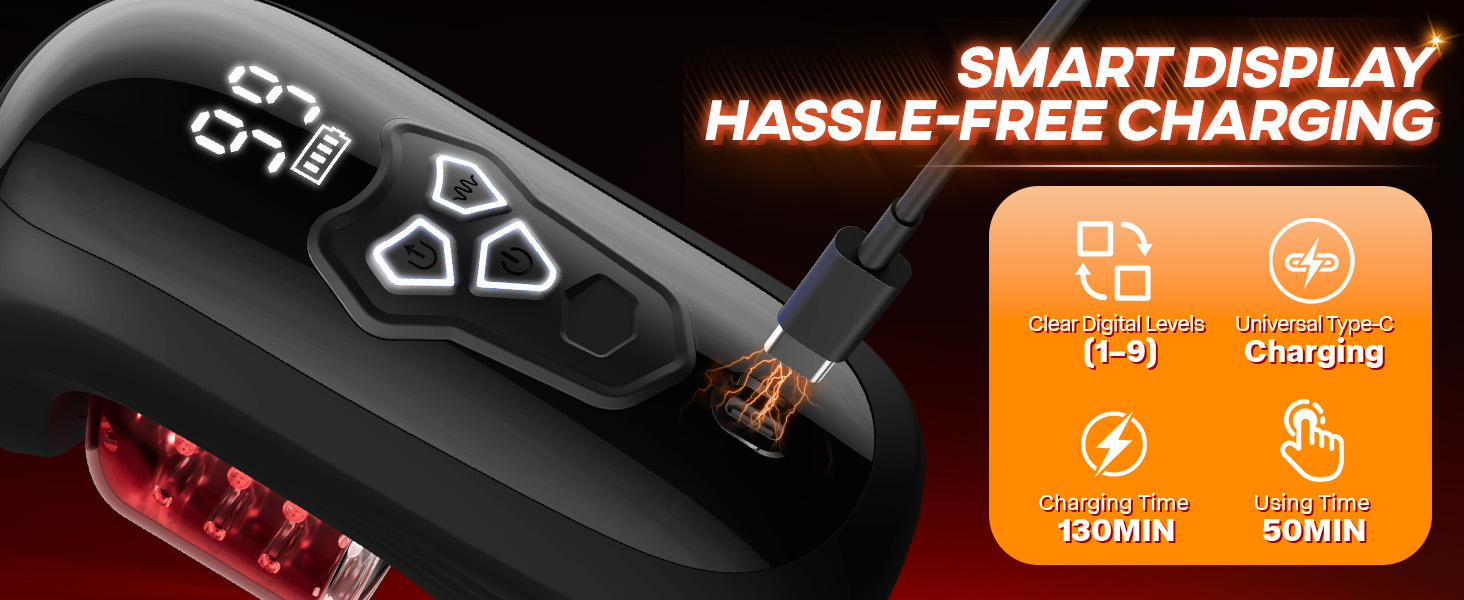 Experience the perfect squeeze. The four soft silicone fingers deliver 9 grip levels, from gentle teasing to intense pressure. Fingerprint textures and inner ridges boost friction and suction, while the LCD display lets you fine-tune every move for your ideal pleasure intensity.