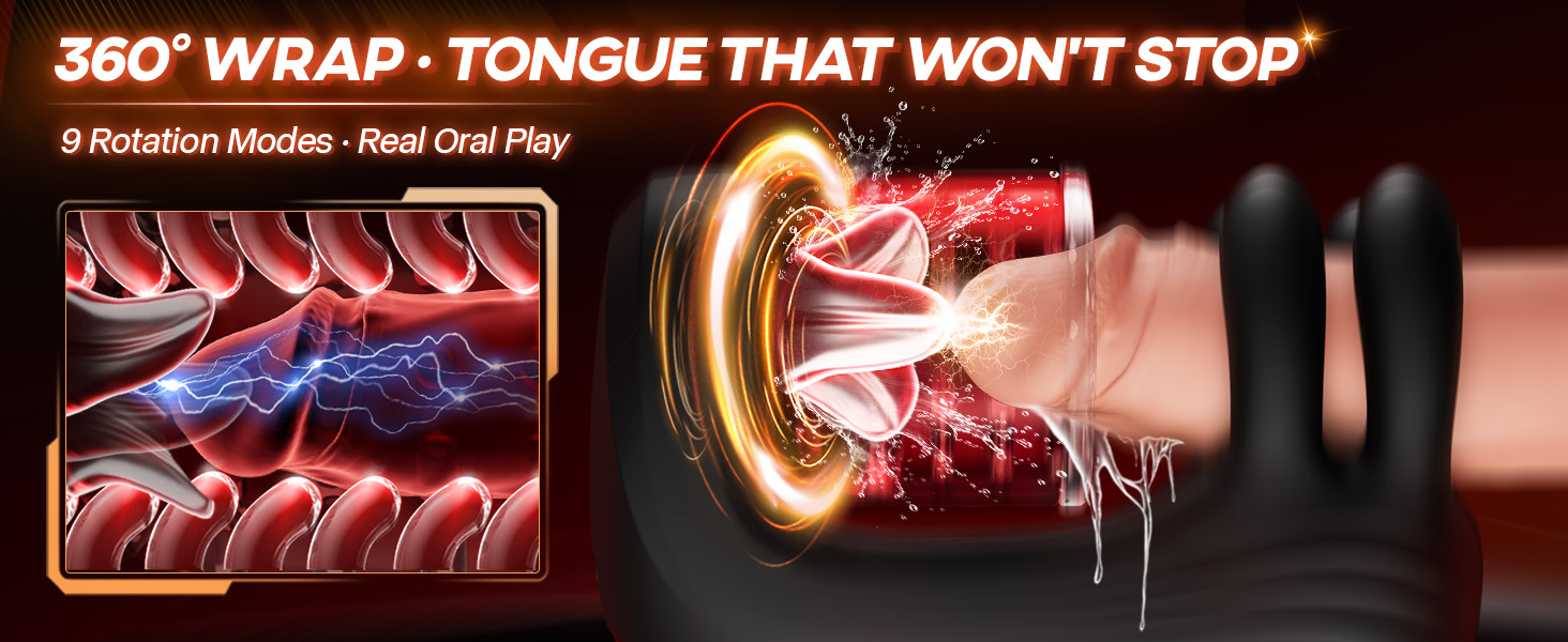 Meet the next generation of male pleasure. The 360° rotating silicone tongue spins up to 4 times per second, wrapping your glans in lifelike motion that mimics real licking. With 9 rotation modes, every swirl hits deeper, harder, and more precisely — for mind-blowing stimulation you’ve never felt before.