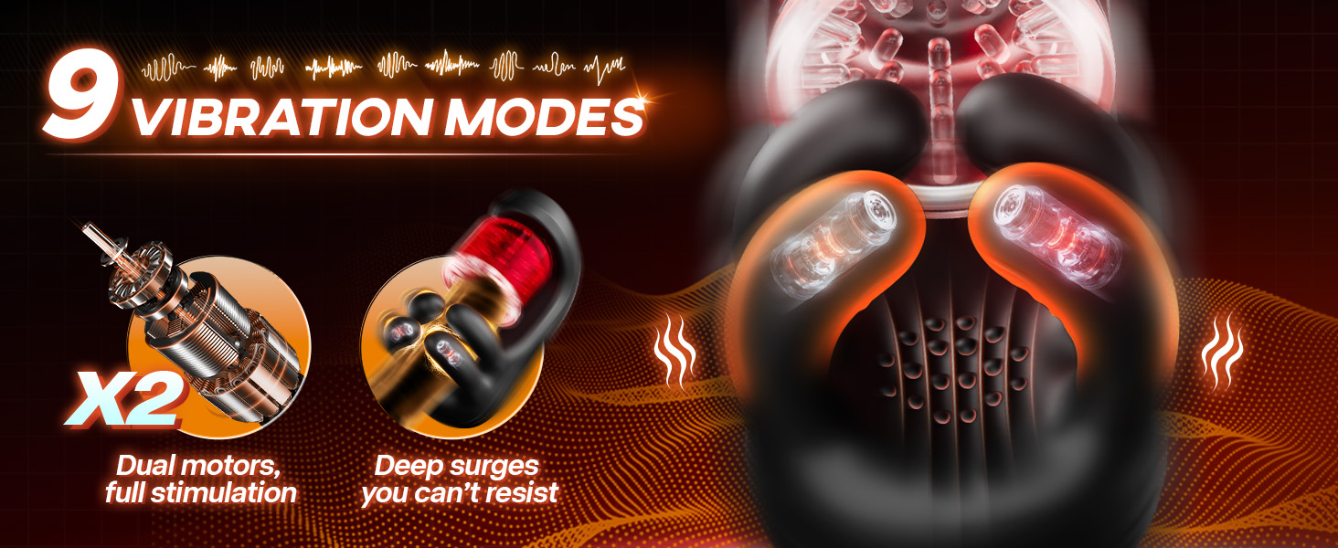 Feel vibration from tip to base. Two synchronized motors stimulate both glans and shaft, creating layered, full-body pleasure. Choose from 9 vibration modes to customize your orgasm — perfect for glans, perineum, or anywhere you crave stimulation.