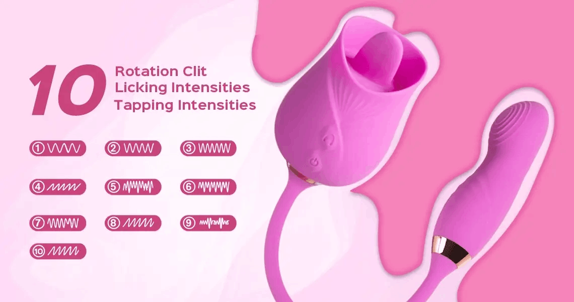 The dual-ended rose toy vibrator is the ultimate sex toy for women, featuring upgraded technology that takes pleasure to the next level with a tongue-licking vibrator and a soft tongue. The innovative design of the licking tongue massager aims to provide romantic and feminine rose-like sexual stimulation for women. Thousands of potential orgasms are hidden inside the pink blush appearance of the rose toy, waiting for you to discover them.