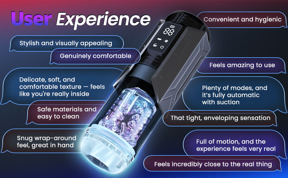Whether you're exploring solo pleasure or enhancing your collection, this masturbator offers an advanced combination of suction, vibration, and motion in one sleek design. Enjoy lifelike sensation, precise control, and easy maintenance—all in one high-end device.