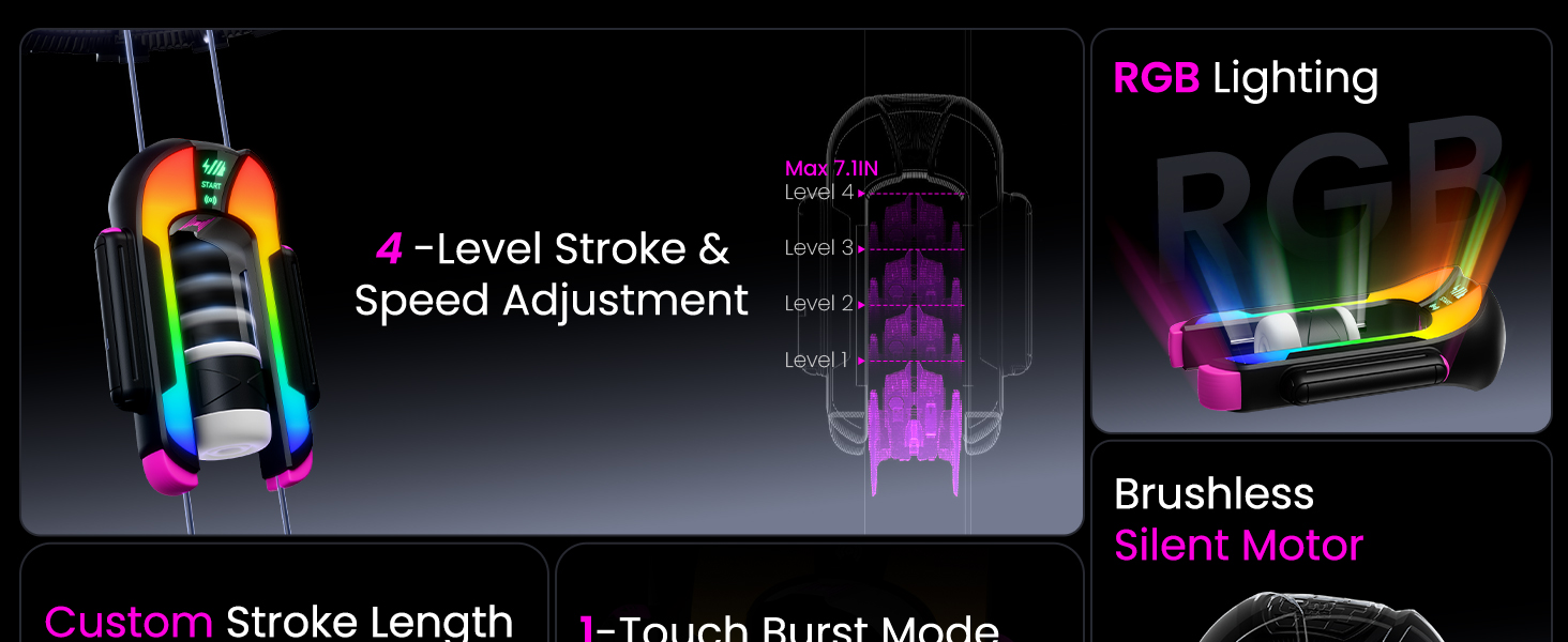 1. Adjustable 7.1IN Stroke Length with Smart APP Control - Precisely adjust thrust depth with a single slide, from short teasing strokes to long, deep thrusts. Personalized rhythm settings deliver a more controlled, customized experience. Whether used as a male masturbator or part of your sex toys for men collection, the adjustable stroke length elevates the pleasure of your male sex toys, giving you a fully personalized experience.